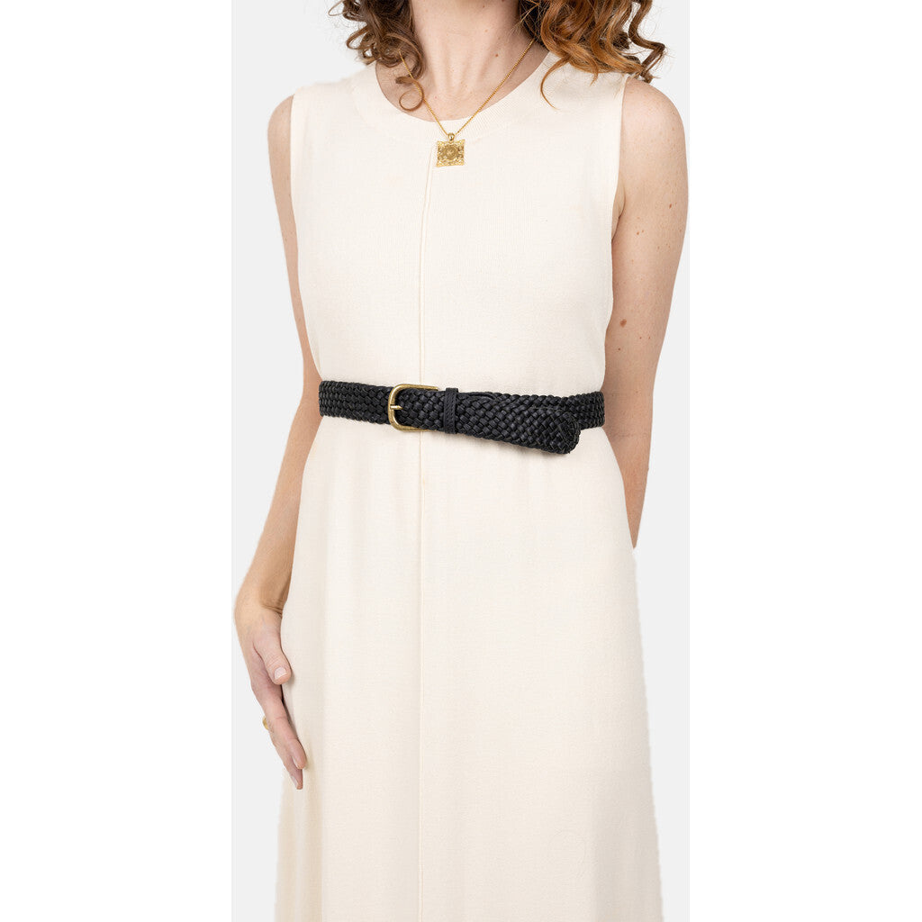 Dette beltet har blitt håndflettet med skinnstrimler som har en flerfarget finish på grunn av den unike håndverksprosessen. Harper Beltet er komplettert med en messingspenne som gir beltet et tidløst utseende. Tre den gjennom løkkene på jeansen din eller knip den over en flytende kjole, som matcher smykkene dine med den antikke gullspennen.