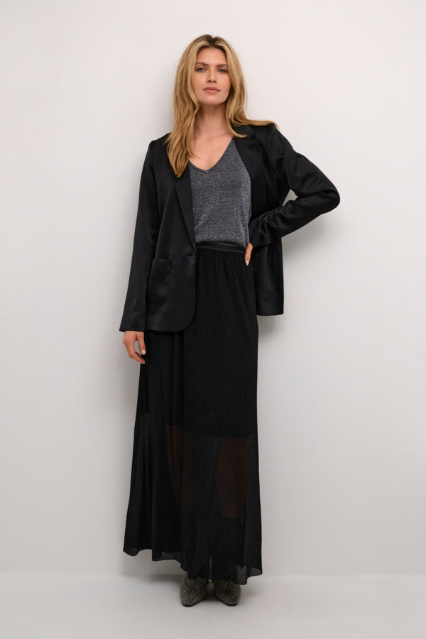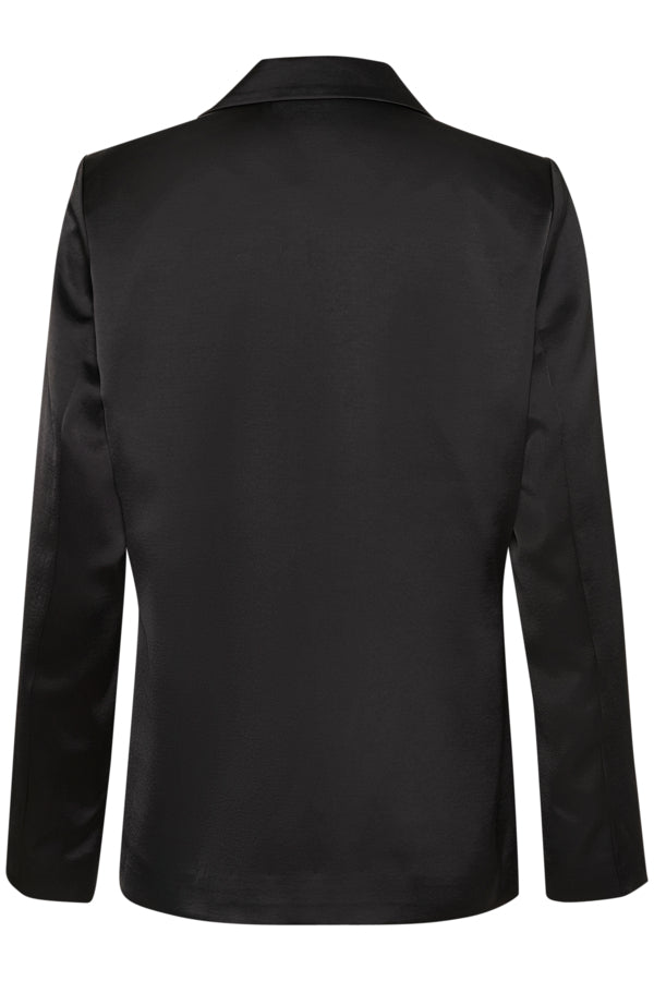 Lekker dressjakke i sort sateng fra Cream. Lukkes med en knapp foran. Dette kan fort bli din nye favoritt blazer. Klassisk og fin. Bruk den alene eller sett sammen med bukse i samme serie. Denne modellen er mer glinsede i stoffet! super kuuul!