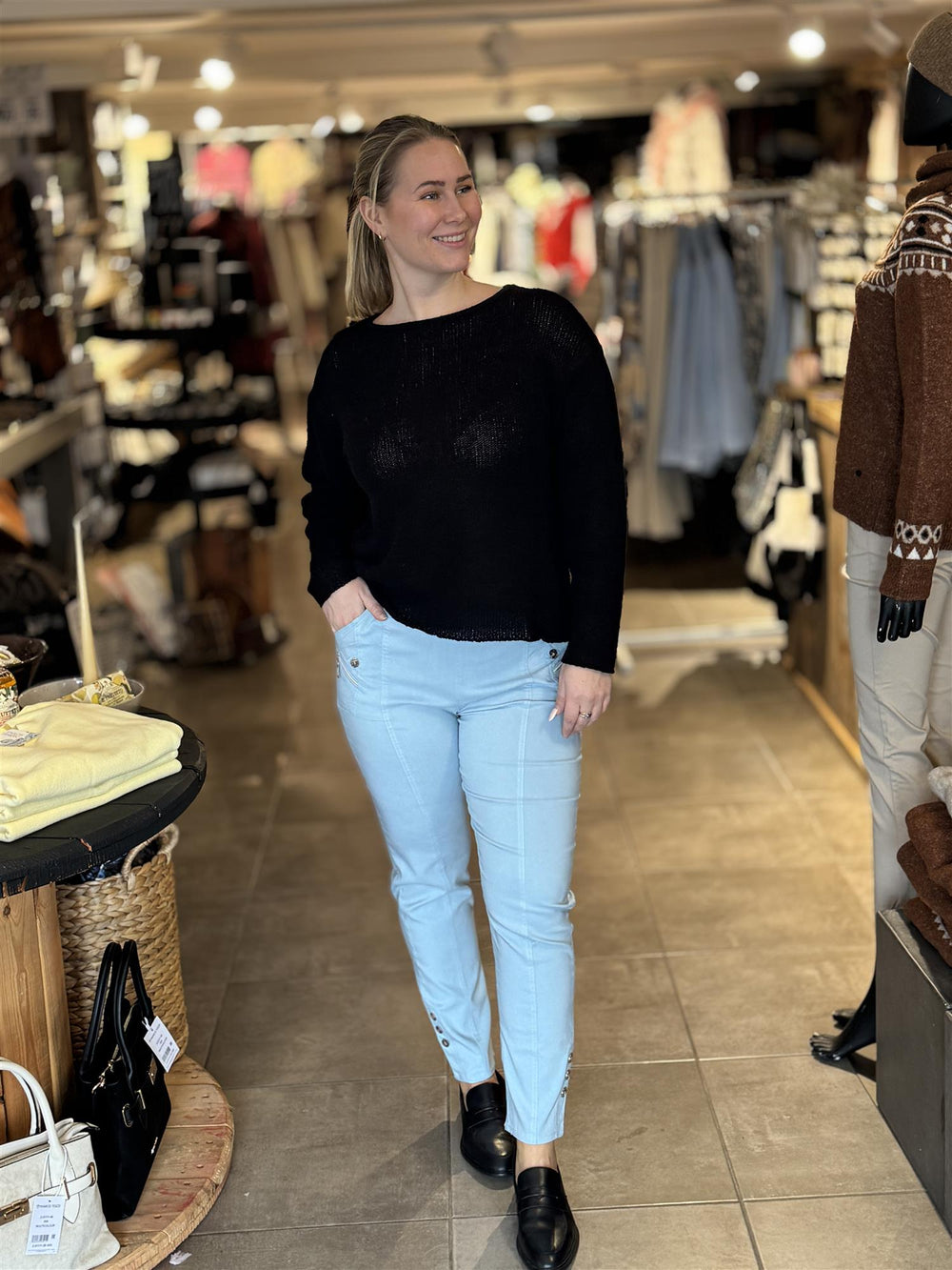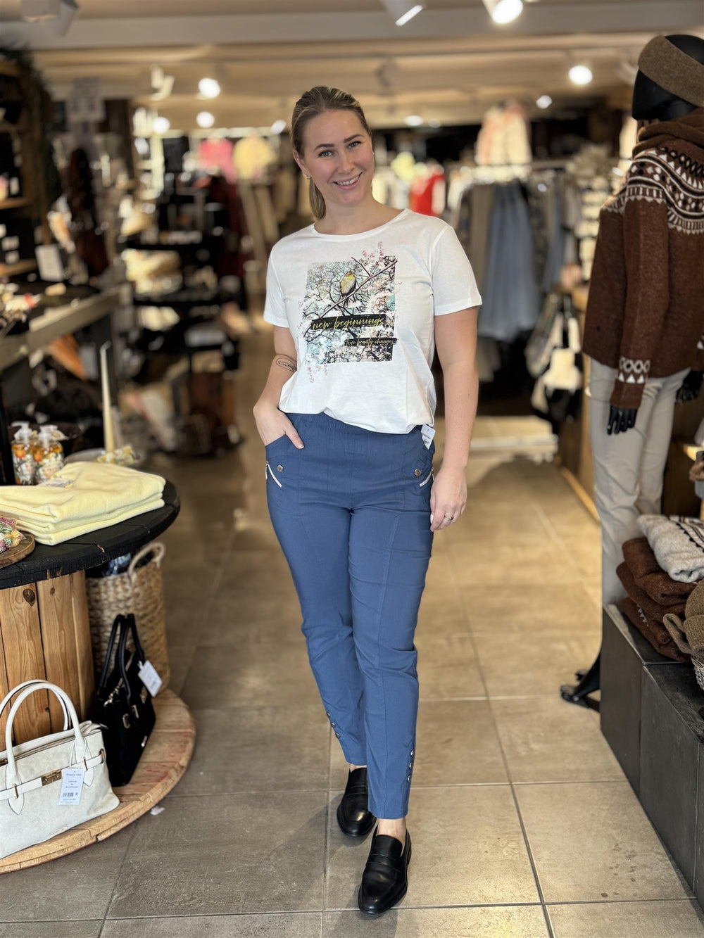 Kjente merker blant annet som Jeans by Bessie, Pulz Jeans, My Essential Wardrobe, Kaffe Clothing, Cream, Cecil, Soya Consept, Freequent og Culture – alltid med god passform og fine detaljer!