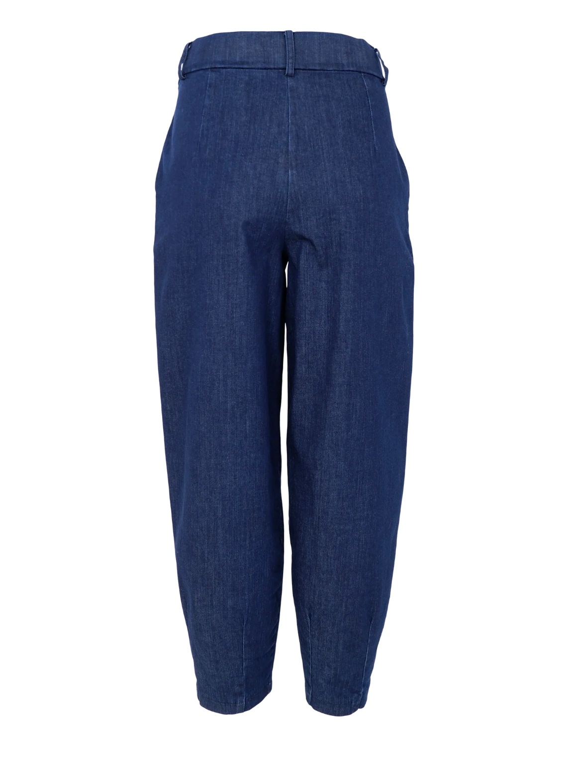 Den populære barrel fasongen gir en lett avrundet benform som skaper en avslappet og moderne silhuett. Buksa har fast linning med beltehemper og en glatt front som gjør den enkel å style – både med skjorte, strikkegenser og bluse.