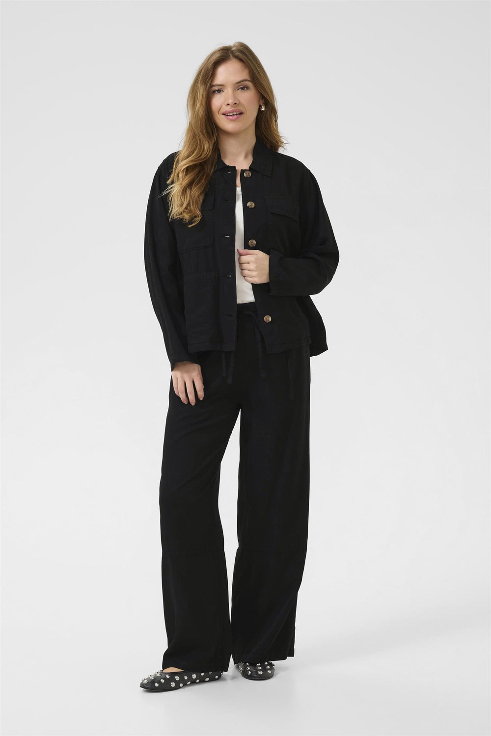 CUNavi Clarina fra Culture er en lett, sort jakke du enkelt slenger over ethvert antrekk. Enten du styler den med jeans, skjĂžrt eller matchende bukser, er dette plagget som gir deg den lille ekstra touchen uten at det blir for mye.