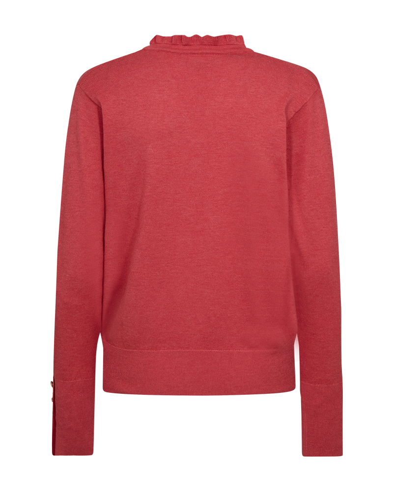 FQKatie fra Freequent er en elegant og myk genser i tynn strikk som passer perfekt til både hverdags og jobb. Denne modellen har en løs og flatterende passform, samtidig som de små detaljene gjør hele forskjellen – som dekorative knapper, volangkant i utringningen og nydelig V-hals.