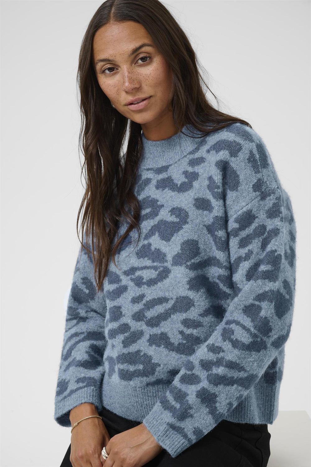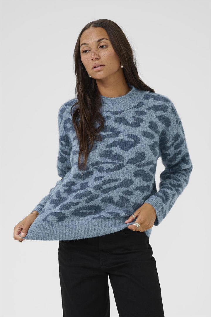 Skill deg ut med stil! KAsandra genser fra Kaffe Clothing kombinerer myk komfort med et friskt leopardmønster i lekre blåtoner. Denne genseren er perfekt for deg som vil ha et hverdagsplagg som føles like godt som det ser ut.