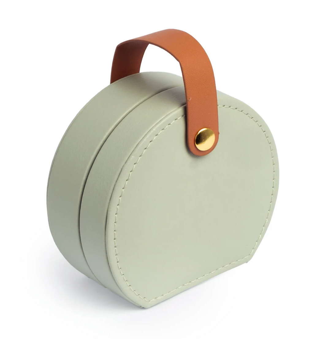 Hold orden på favorittsmykkene dine med denne fine, runde smykkeboksen i kunstskinn. Den er liten og nett – akkurat passe stor til å få plass i vesken eller kofferten, uten at smykkene dine blir flokete eller borte.