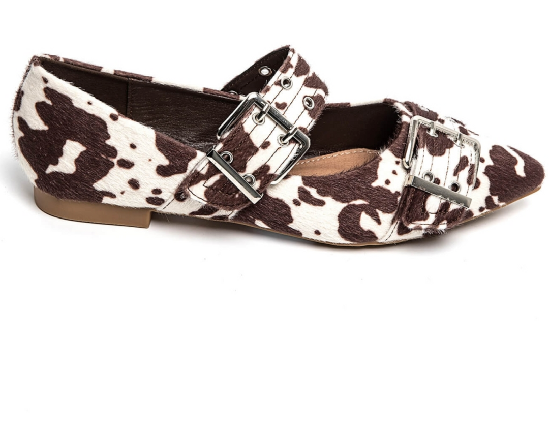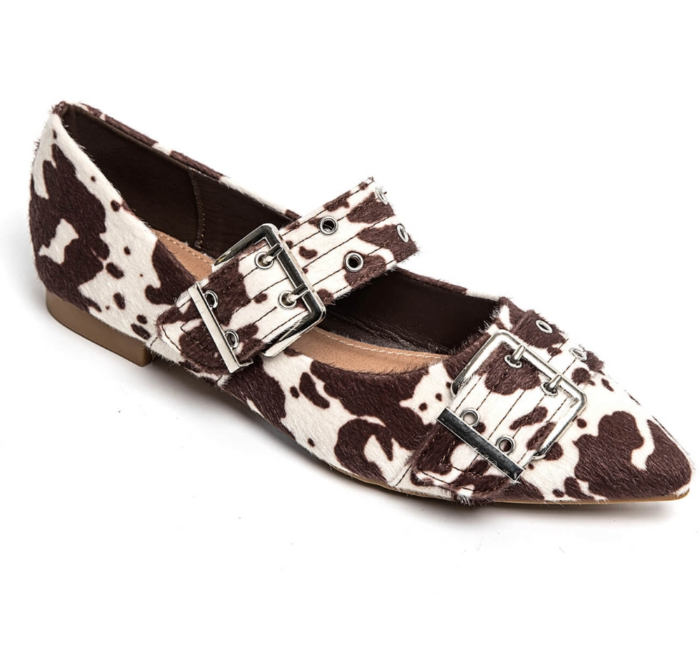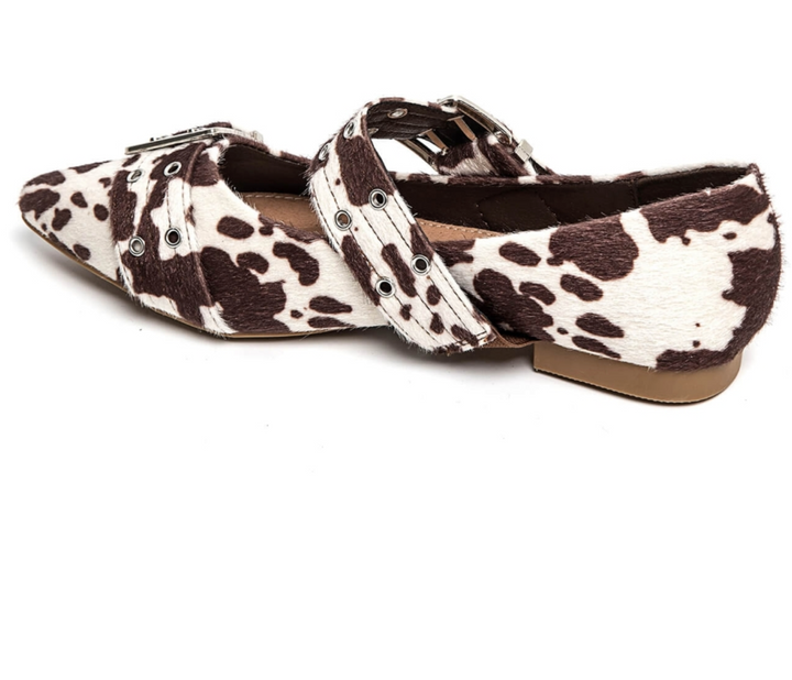 Gi antrekket ditt en trendy vri med Liva sko fra Marta! Disse unike skoene i lekent kumønster kombinerer komfort med stil, og de to brede spenner gir et kult og edgy uttrykk. Perfekte til jeans, kjoler eller skjørt – disse skoene blir garantert et blikkfang i garderoben din.