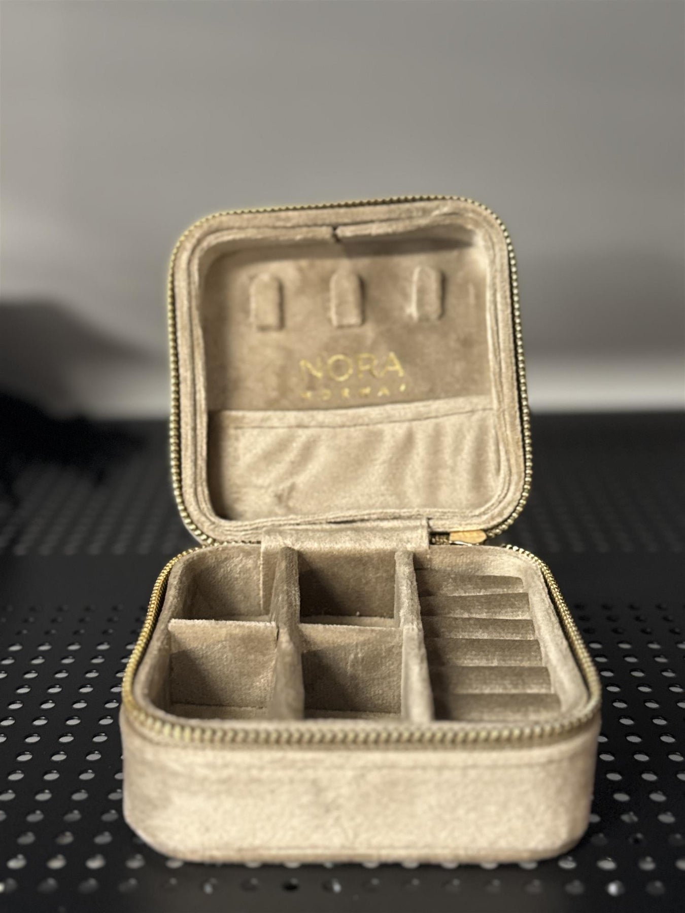 Smykkeskrin i fløyel. Smykkeskrinet er i reisestørrelse, så perfekt om du skal på reise. Den er også veldig dekorativ, så den kan fint være en del av interiøret ditt 🥰