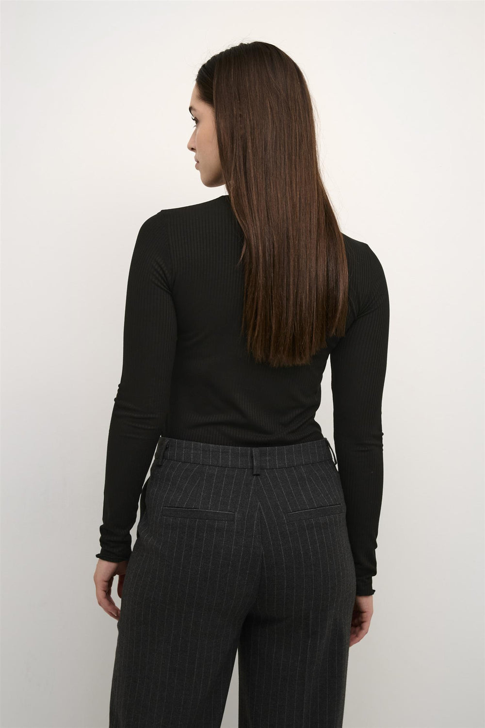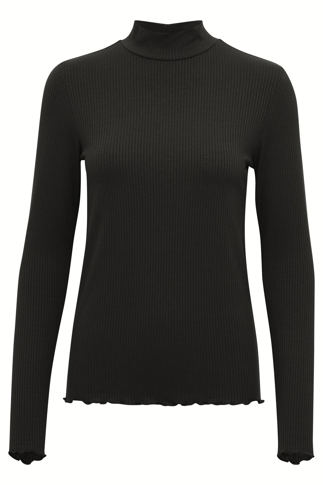 Sort basisgenser med litt halvhøy hals hals i herlig viskosekvalitet med stretch fra Kaffe Clothing. Dette er genseren du fint kan bruke som den er eller ha under en cardigan eller blazer.