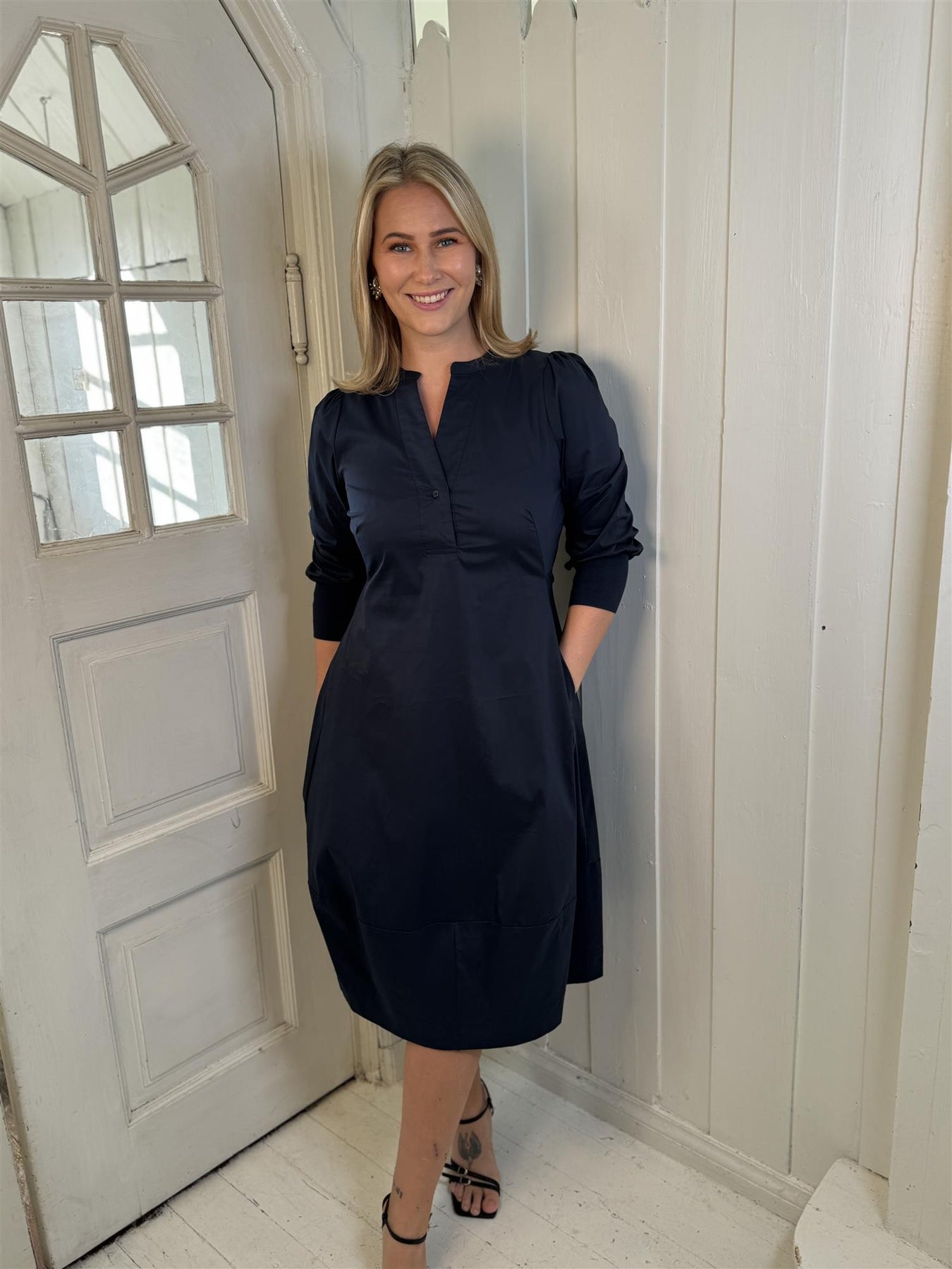 Laget av en behagelig bomulls blanding, gir kjolen en myk og lett følelse samtidig som den har en pen fasong. De elastiske mansjettene gir en fin kontrast og gjør at ermene sitter godt.