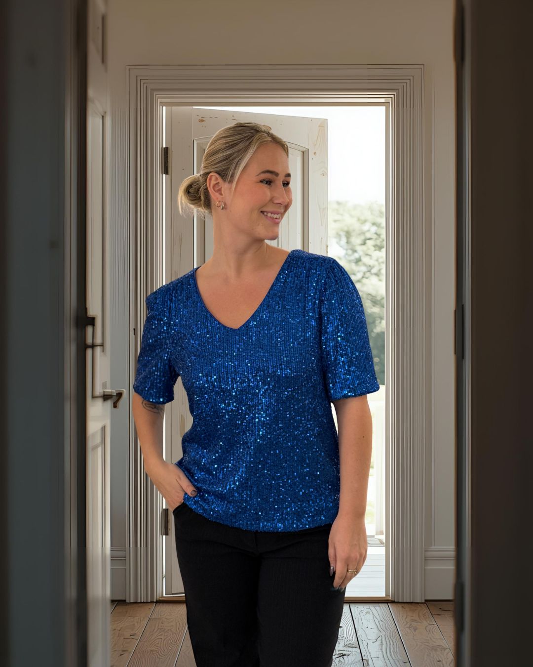 Sjekk denne paljett toppen som er klar til å gi deg glamfaktor til dine festøyeblikk.
