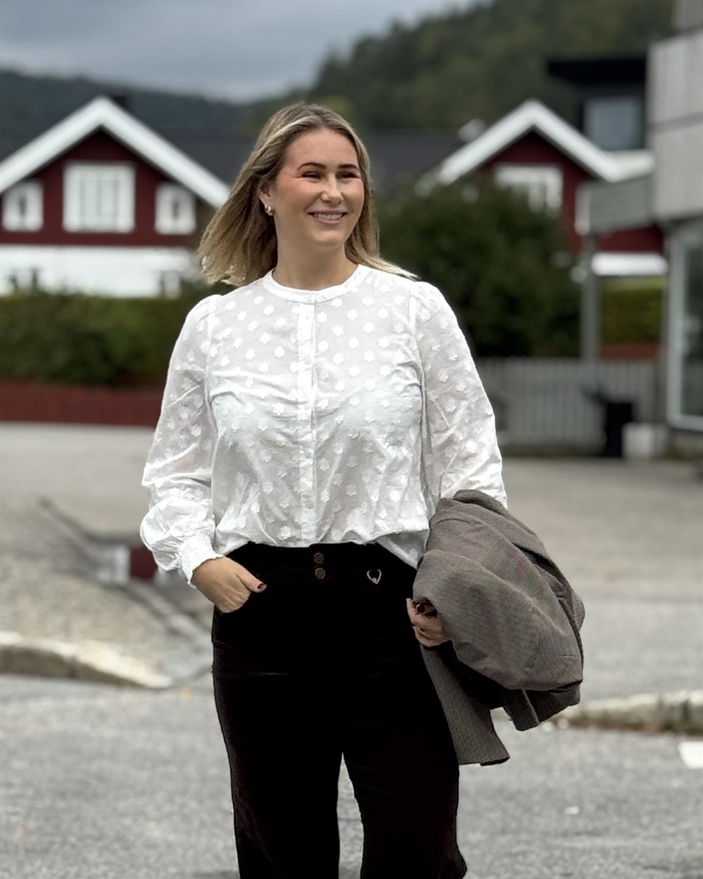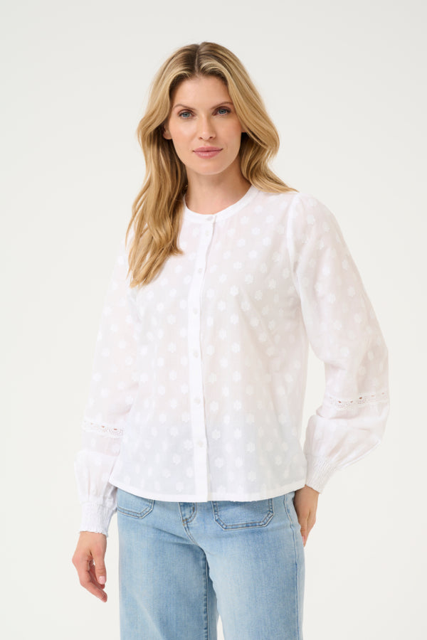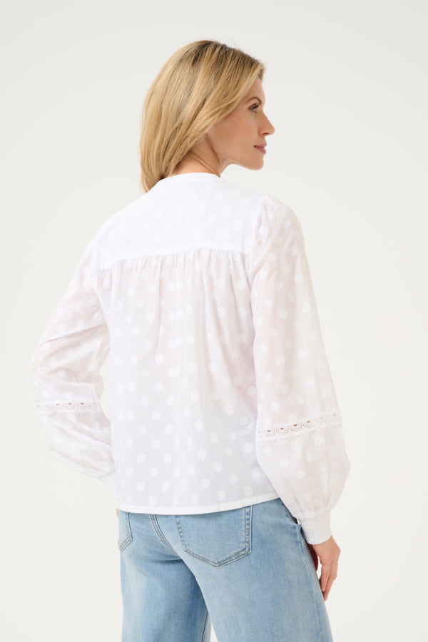Nydelig bomullsbluse fra kaffe med knepping. Blusen har fine blomster. Smock i ermslutt. Super fin til både hverdag og fest.