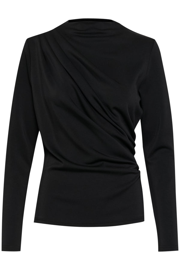 Super fin bluse i deilig modal kvalitet. Blusen er høy i hals, har lange ermer og drapering i toppen.