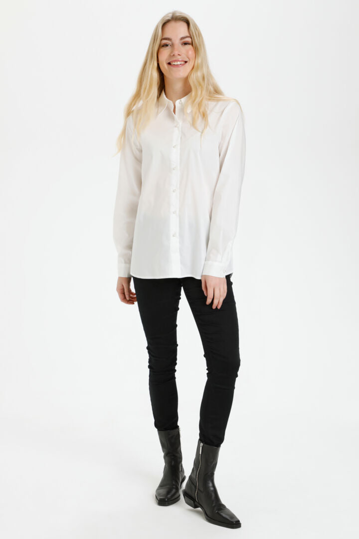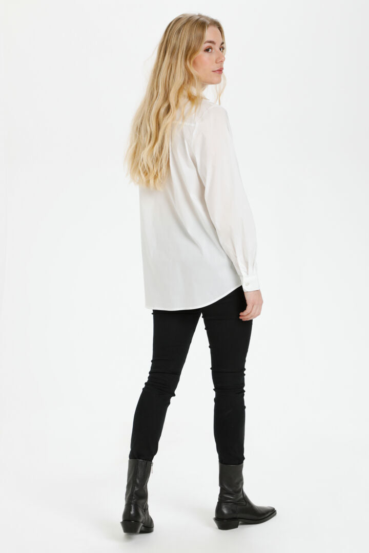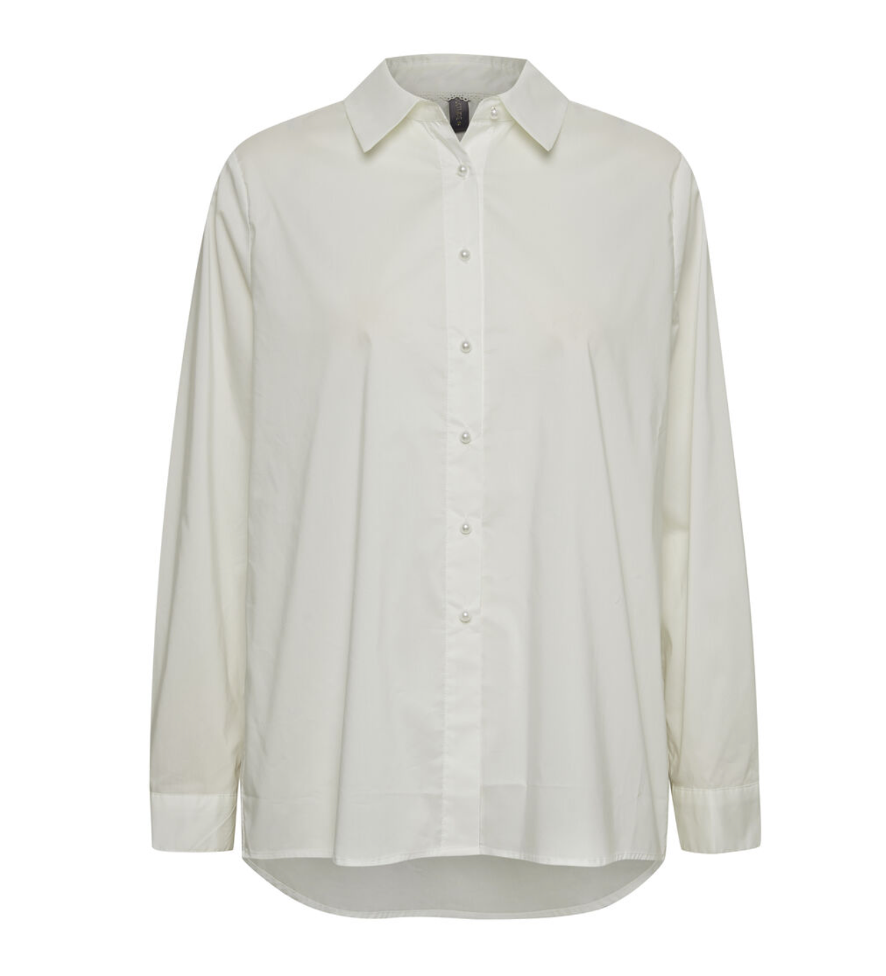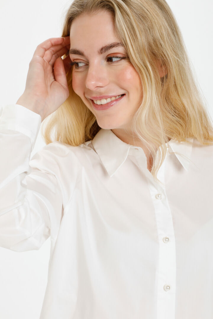 Lekker løstsittende storskjorte i poplinkvalitet som går litt lengre ned bak enn foran og har stretch i stoffet.