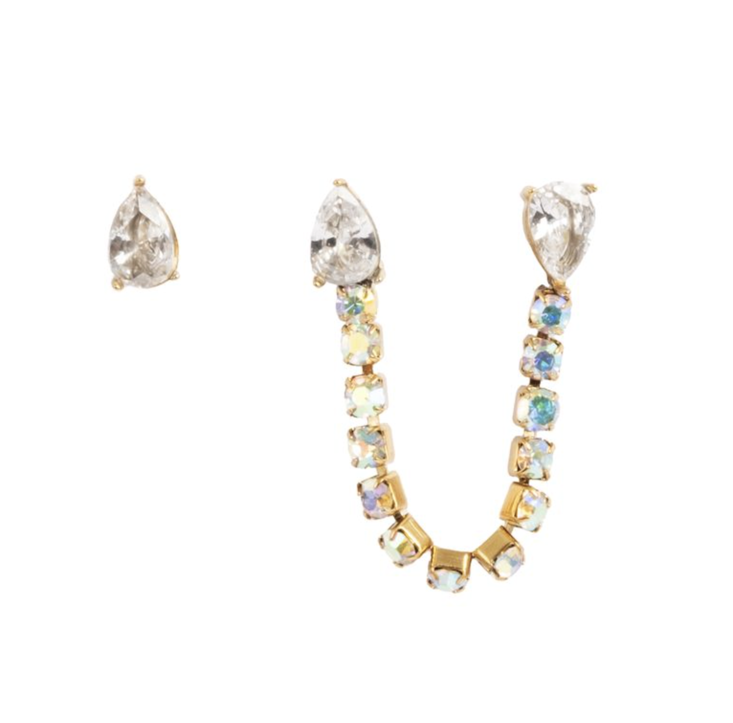 Se så fint! Har du to hull i øret er dette øredobbsettet helt perfekt. Lite og nett - perfekt til hverdag og elegant til fest! Krystallsteiner i Aurora Borealis effekt. Tone Damli by A&C Oslo, en smykkekolleksjon som oser av femininitet, lekenhet og eleganse. Høy kvalitet, laget i begrenset antall.