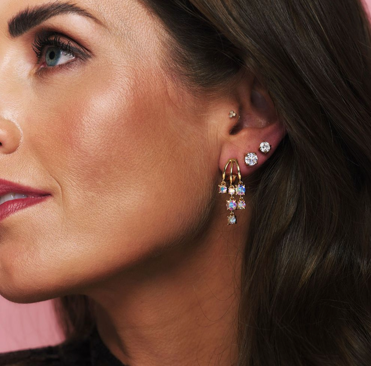 Butterflies trippel hoop med en sverm av glitrende steiner med AB effekt som skinner i nydelige pastelltoner. Disse gir definitivt antrekket det lille ekstra! Tone Damli by A&C Oslo, en smykkekolleksjon som oser av femininitet, lekenhet og eleganse. Høy kvalitet, laget i begrenset antall.