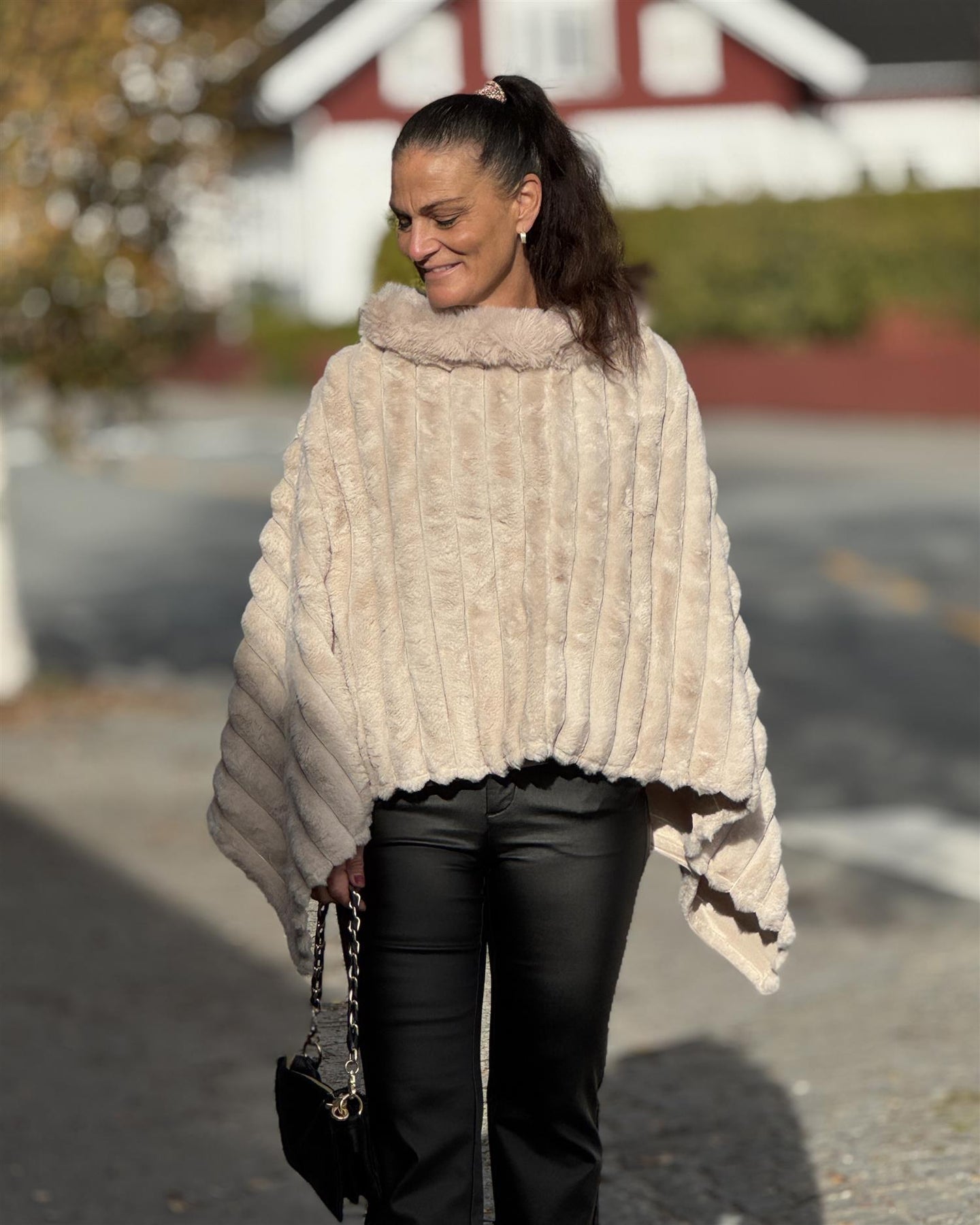 Myk, varm og helt uimotståelig! Denne ponchoen i deilig fuskepels gir antrekket det lille ekstra – enten du skal på jobb, café eller ut på byen. Den har et klassisk og elegant uttrykk som passer like godt over jeans og støvletter som til finbukse og hæler.