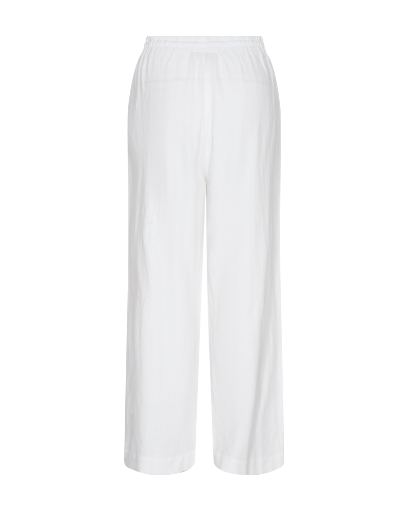 Linbuksen har elastisk lining i midjen med snøring, lommer på siden og en vid passform.