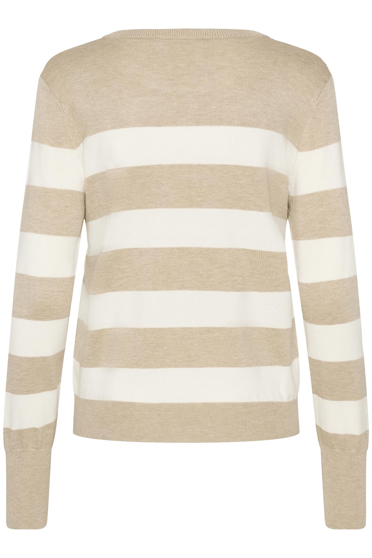 Denne stripete genseren fra Kaffe Clothing er en skikkelig klassiker som funker sesong etter sesong. Med normal passform sitter den pent uten å stramme, og de lange ermene gjør den like fin alene som under jakke eller blazer.