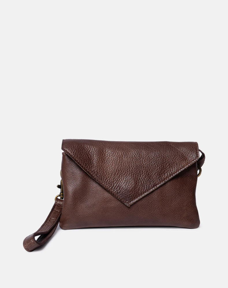 Claire Urban clutch i skinn – Woodsmoke 🤎