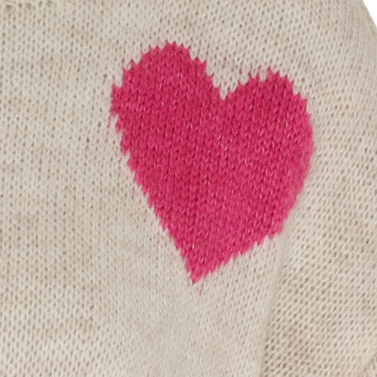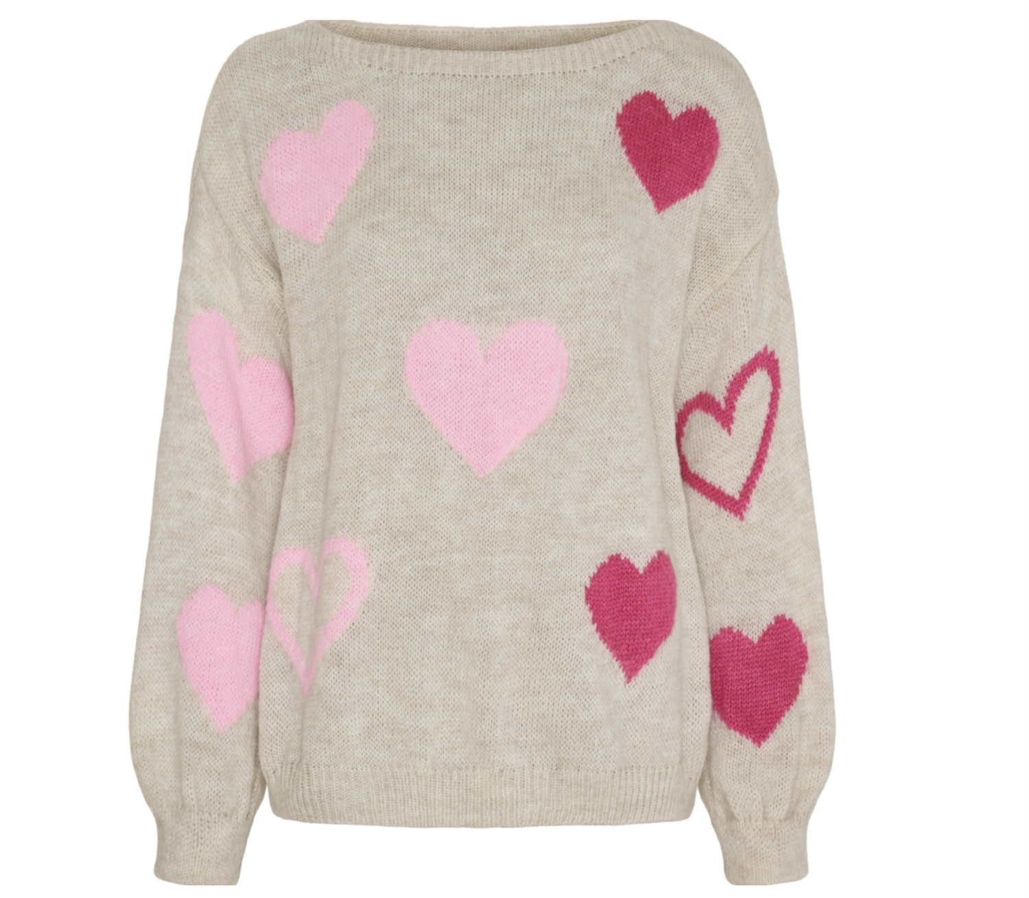 Genseren har en avslappet og flatterende passform som sitter fint på kroppen. Den er myk og behagelig å ha på, og fungerer like godt til hverdags som til litt finere anledninger. Hjertene gir et friskt uttrykk uten å bli for mye – akkurat passe pyntet.