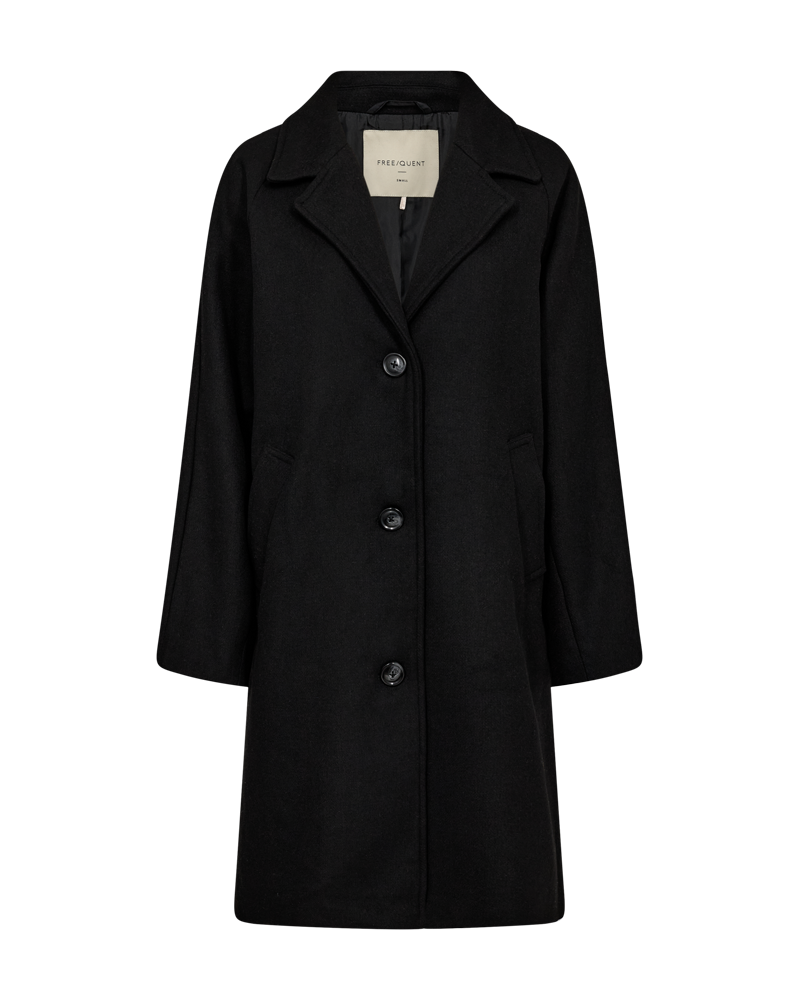 Løstsittende Jakke fra Freequent i mykt materiale. Denne jakken har et tidløst og klassisk design med knappelukking, V-hals med slag, lange ermer, frontlommer og en elegant splitt bak. Den rette passformen gir et sofistikert uttrykk som passer perfekt til enhver anledning.