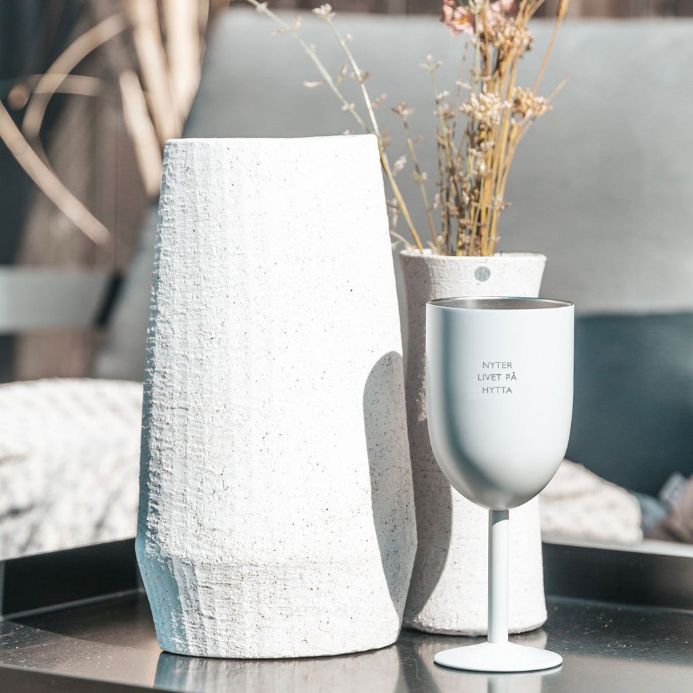 Pictureit - Termo vinglass med tekst "Nyter livet på hytta"
