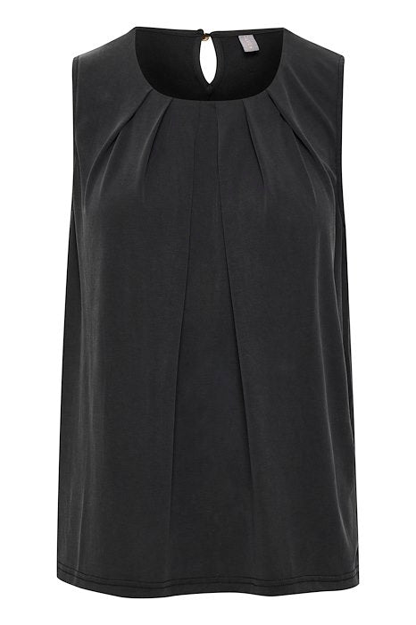 Oppdag denne flotte tank toppen med drapering ved halspartiet. Denne toppen er en allsidig og elegant tillegg til garderoben din, perfekt å bruke som et stilfullt lag under en blazer eller alene.