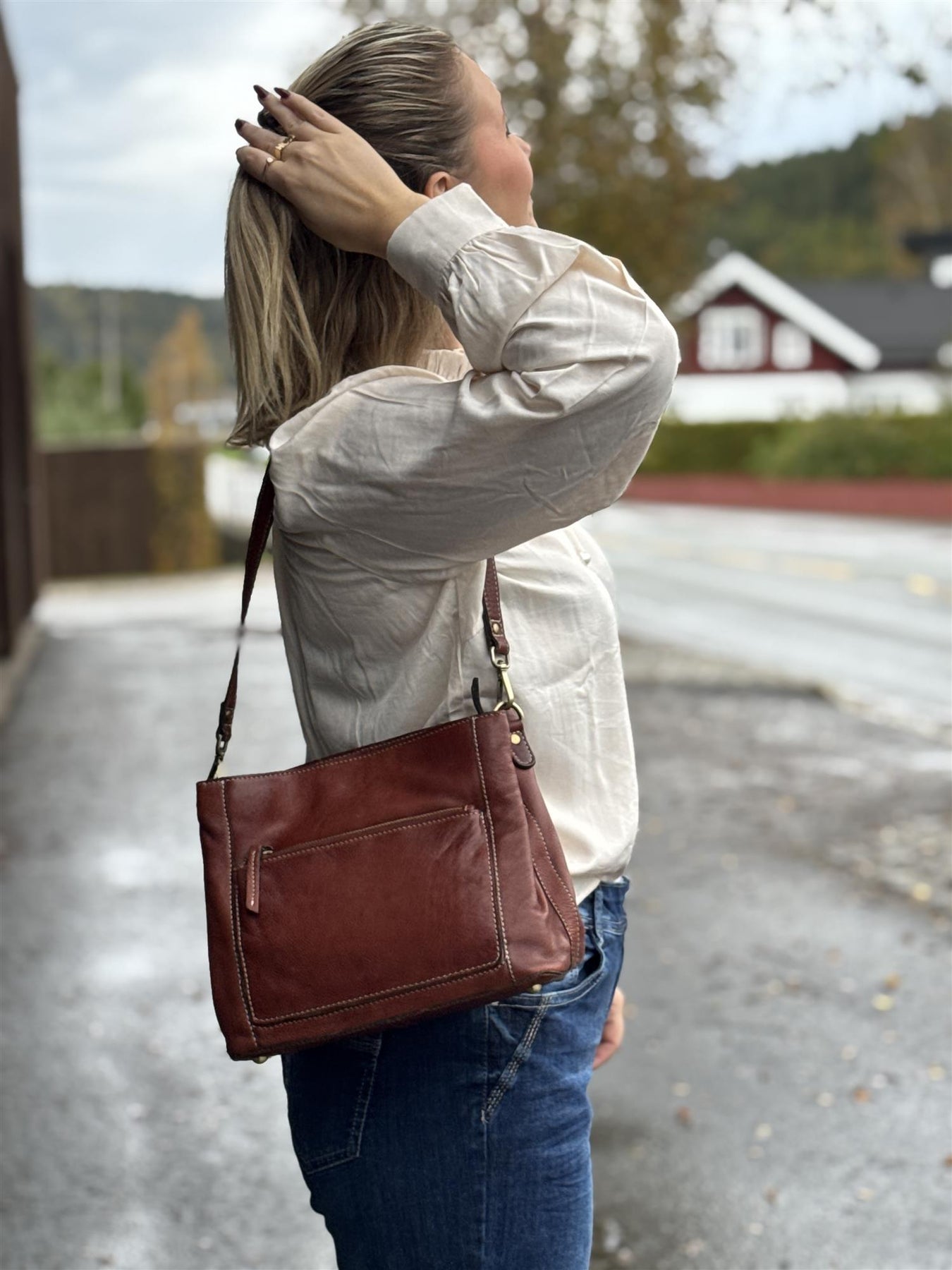 En veske du får lyst til å bruke hver dag! 🖤 Myra Small er en chic og funksjonell skinnveske – perfekt til både jobb, hverdag og helg. Den har en moderne og stilren fasong, og er laget i ekte skinn av høy kvalitet som bare blir finere med tiden.