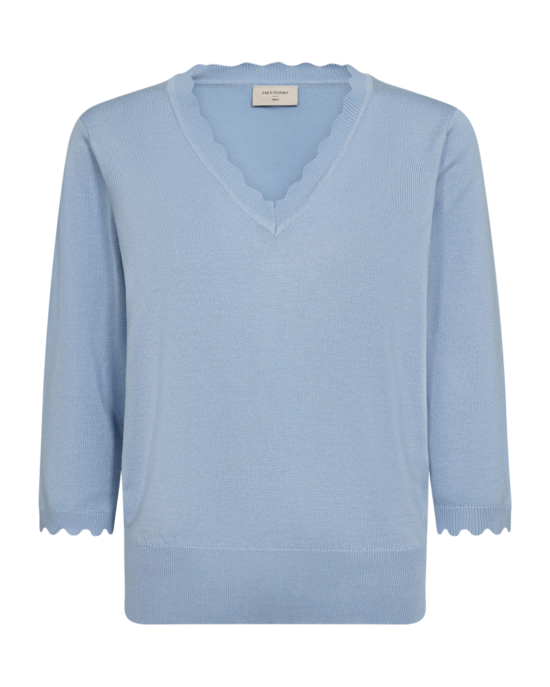 Genser fra Freequent i et mykt, finstrikket materiale. Genseren har trekvart ermer, V-hals, fine kamskjellkanter samt en elegant, avslappet passform.