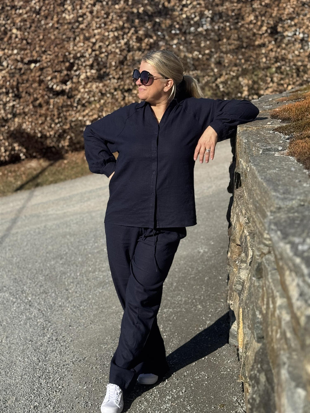 Dette er skjorten du kommer til å bruke hele sesongen! Med knapper hele veien ned, en fin V-hals og klassisk krage, er den både stilren og behagelig. Lett og luftig i lin og viskose, et materiale som føles fantastisk på og krøller mye mindre enn rene linplagg.