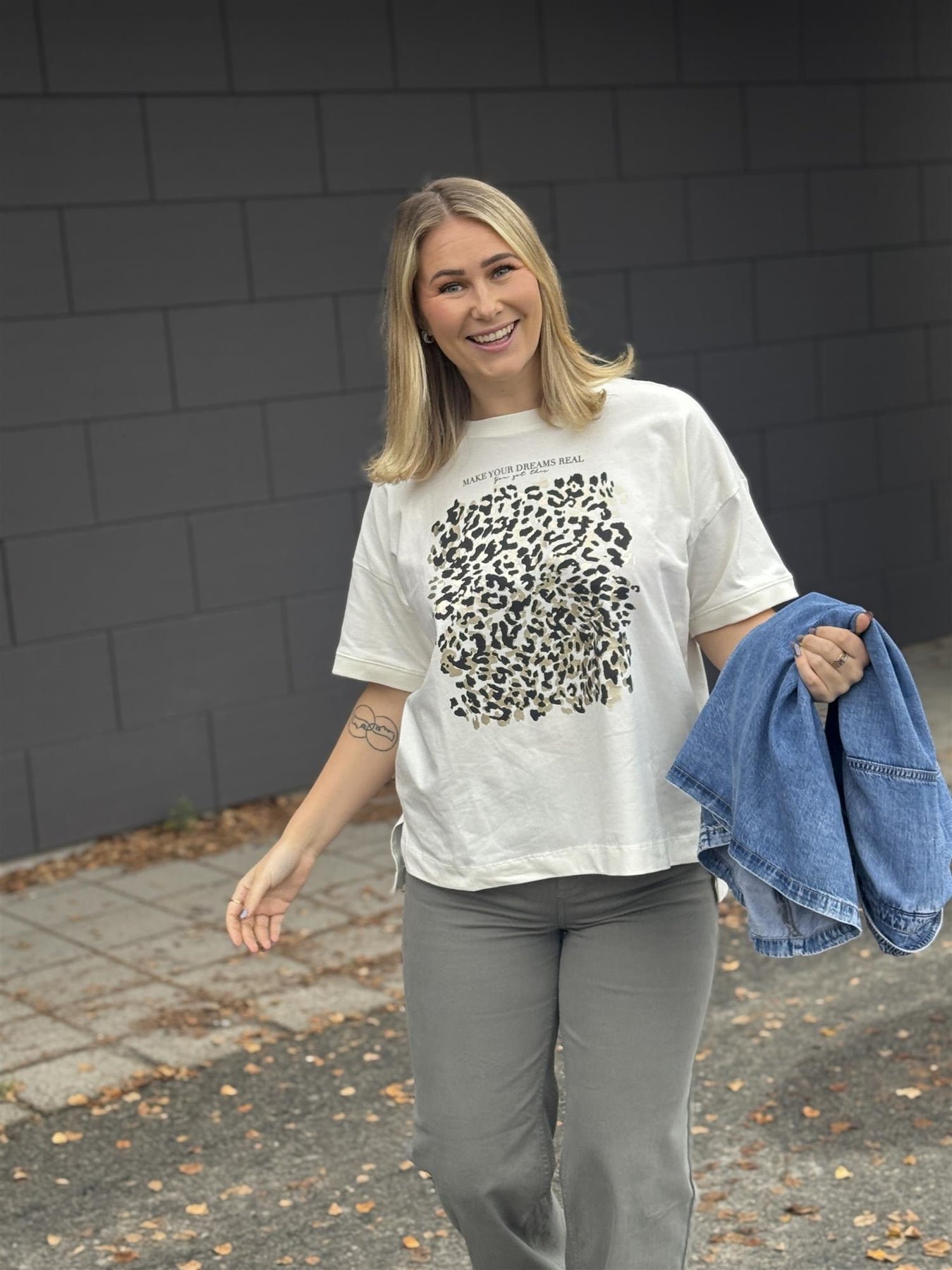 - Kult frontprint med leopardmønster og inspirerende tekst
