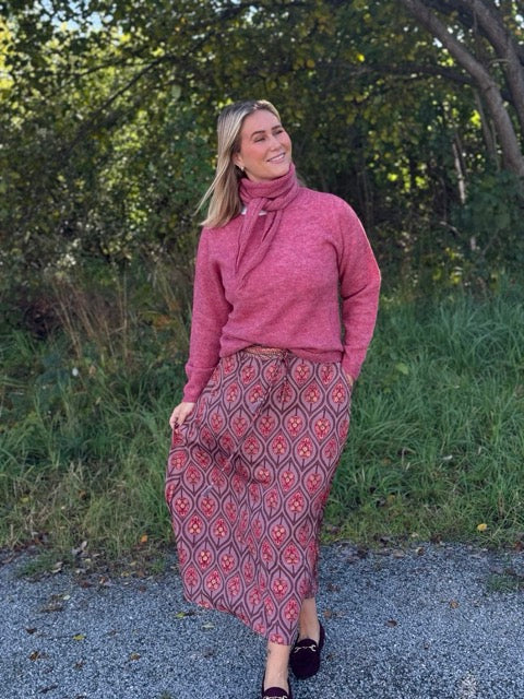 Det unike mønsteret setter prikken over i-en og gir antrekket et feminint og personlig preg. Bruk skjørtet sammen med en enkel t-skjorte for en hverdagslook, eller style det med matchende Luna bluse for et komplett og lekkert sett.