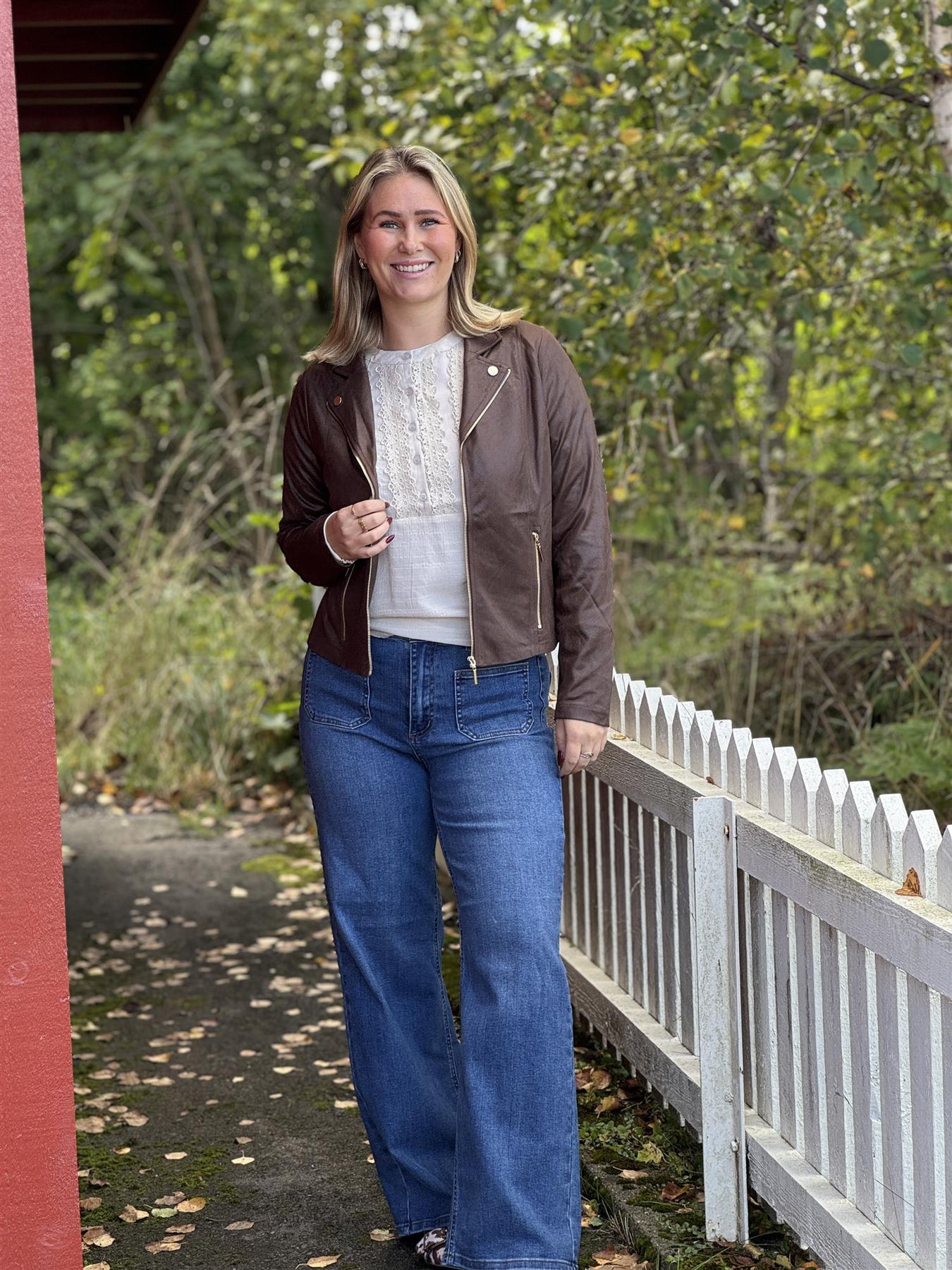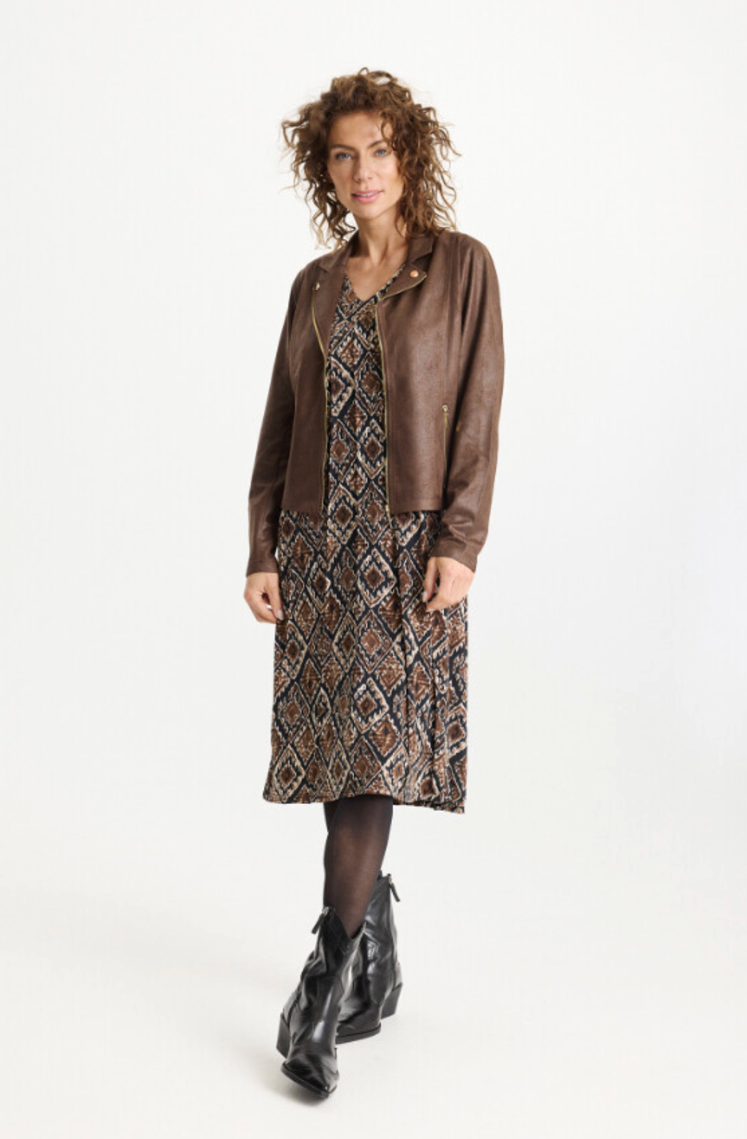 Molly Jakke fra Infront – Brun bikerstil i semsket look
