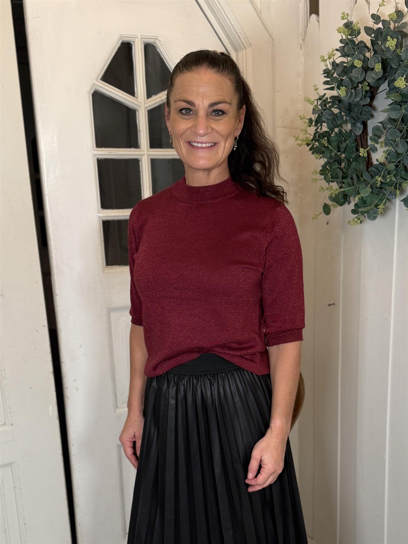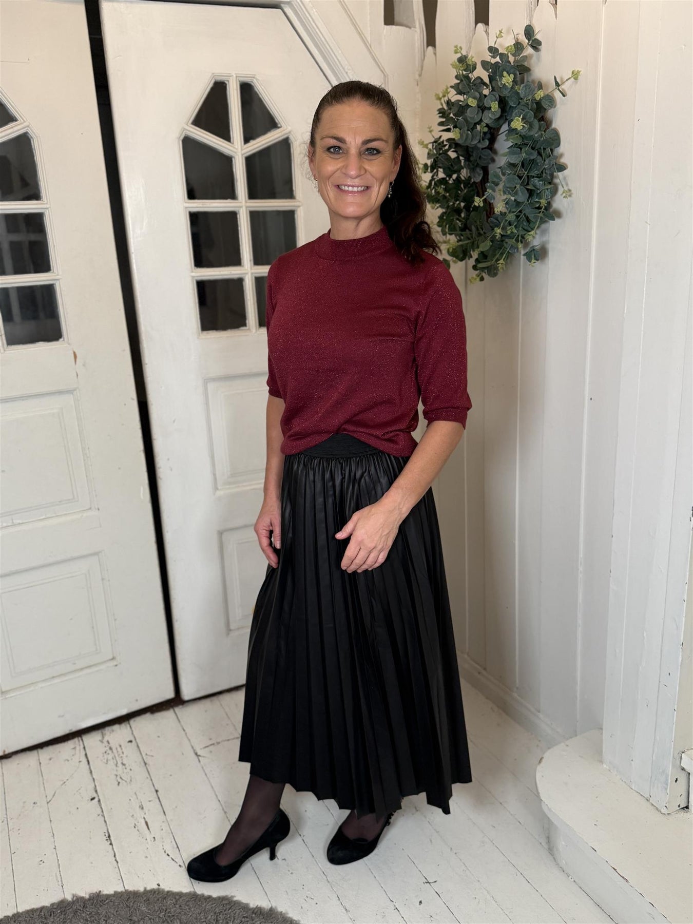 Genseren har korte ermer og en behagelig relaxed fit som gjør den lett og komfortabel å bruke. Perfekt alene til et skjørt eller jeans, eller under en blazer for en mer pyntet look. Den myke viskoseblandingen føles luksuriøs mot huden – og gir en lett glans som løfter hele antrekket.