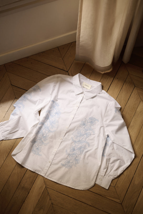Den klassiske kragen og kneppingen i front gir et tidløst uttrykk. De lange ermene og den rette kanten gir en pen silhuett og god komfort gjennom hele dagen.