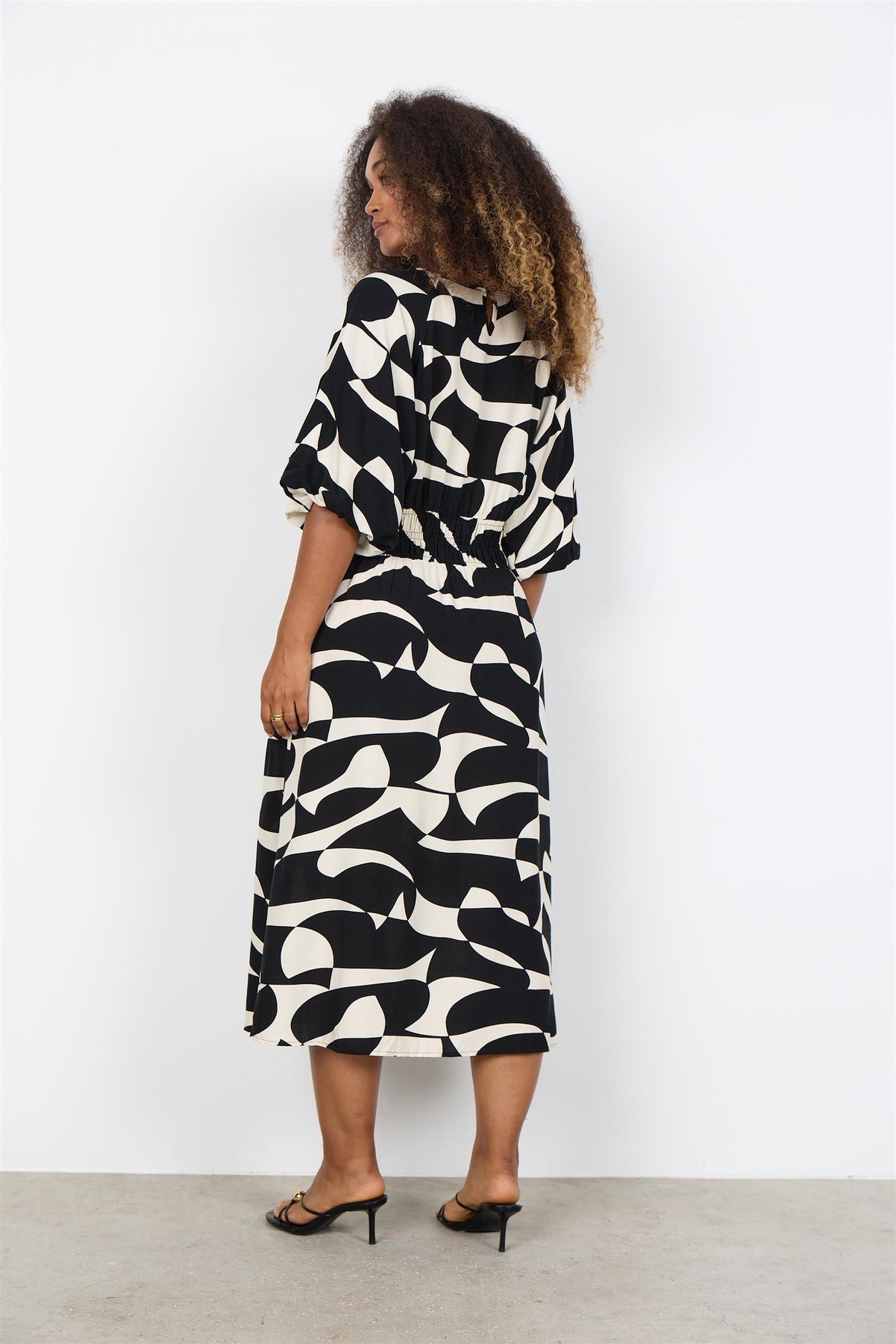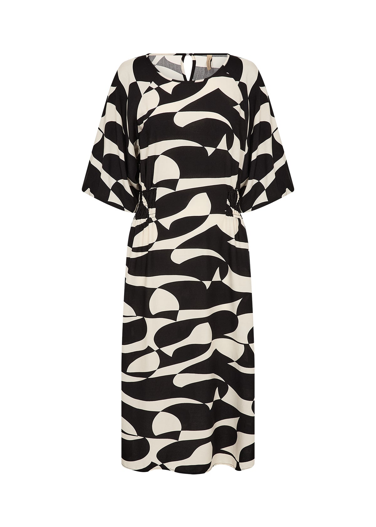 SC-CHANISE 4 er en flott kjole med et moderne og grafisk mønster i sort og krem. Den har et rent og tidløst uttrykk, samtidig som printet gir litt ekstra karakter. En kjole som er lett å bruke – enten du skal på jobb, ut og spise eller bare vil være litt ekstra hverdagsfin.