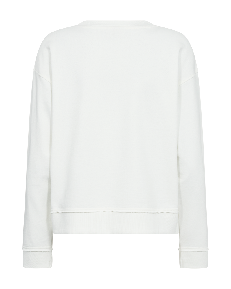 Genseren har en løs og behagelig passform med lange ermer og rund hals. Ribbekanten nederst og på ermene gir en klassisk finish, mens de rå kantene tilfører et lite, moderne preg som gjør genseren litt mer spennende enn en helt enkel basic.