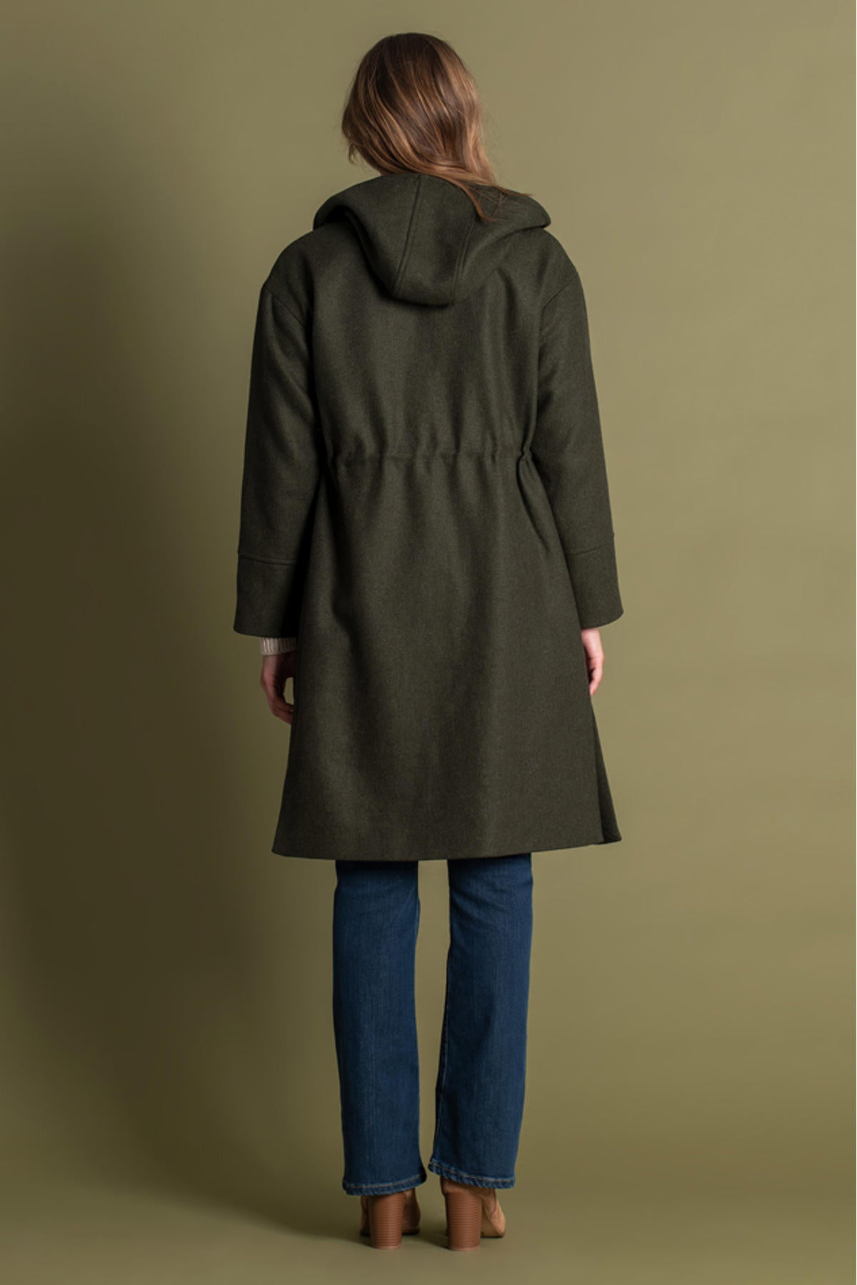 - Praktisk og chic: Den har en stor hette som beskytter, og praktiske lommer i sidene for hverdagskomfort.