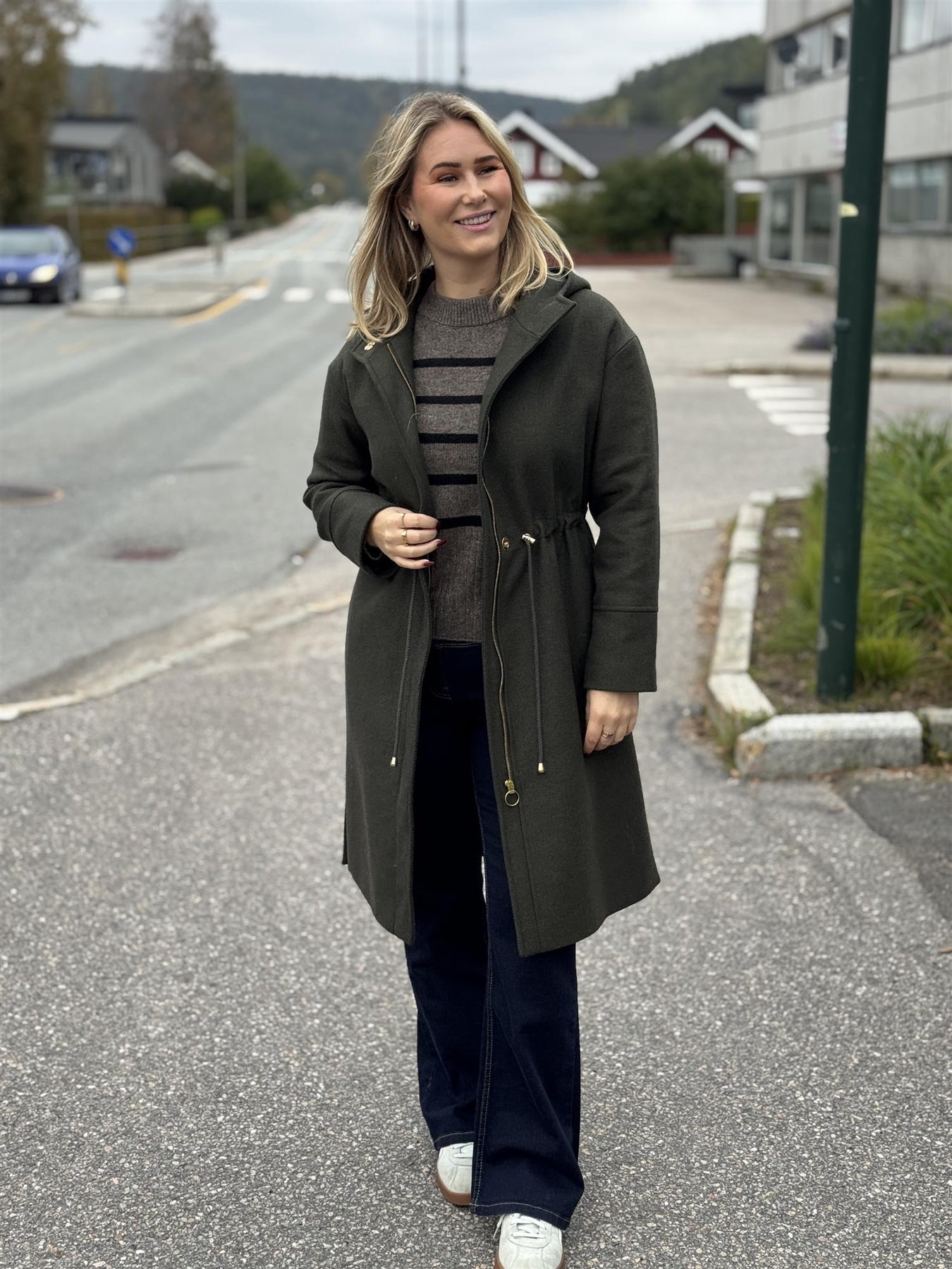 Tidløs varm ullkåpe. Bessie Foret Ullkåpe – den perfekte kombinasjonen av stil og komfort for kjølige dager! Designet med omtanke for både mote og funksjonalitet, og er alt du trenger for å holde deg varm og stilig gjennom høststormer og vinterkulde.