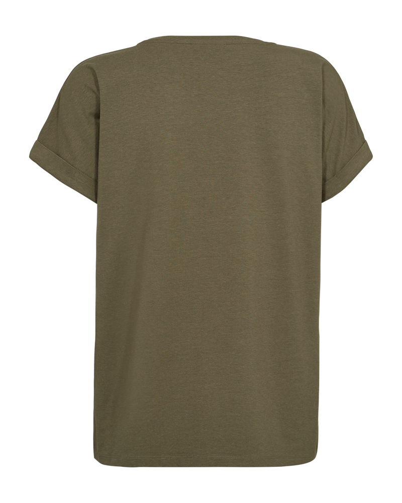 T-skjorte fra Freequent i det mykeste materialet. T-skjorten har en enkel silhuett med ribbekant i den avrundede halsen, en avslappet passform og en liten oppbrett på de korte ermene. En klassisk, stilig T-skjorte.